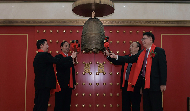 隨后,市國(guó)資委、北京化工集團(tuán)及華騰新材主要領(lǐng)導(dǎo)、主辦券商領(lǐng)導(dǎo)走上前臺(tái)共同敲響開(kāi)市寶鐘。在熱烈的掌聲中,掛牌儀式圓滿禮成。